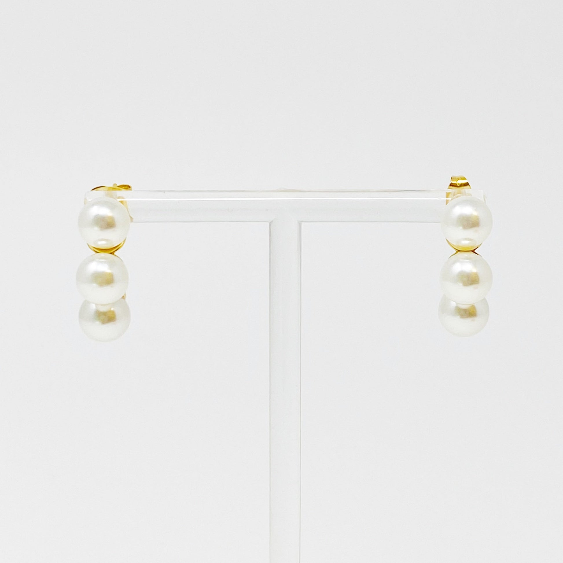 Elegant and timeless, these pearl gradient hoops feature five lustrous glass pearl beads that gradually taper in size for a graceful, balanced look. Crafted from 18k gold-plated stainless steel, they’re both tarnish-resistant and effortlessly chic — perfect for elevating any outfit with a touch of classic charm.