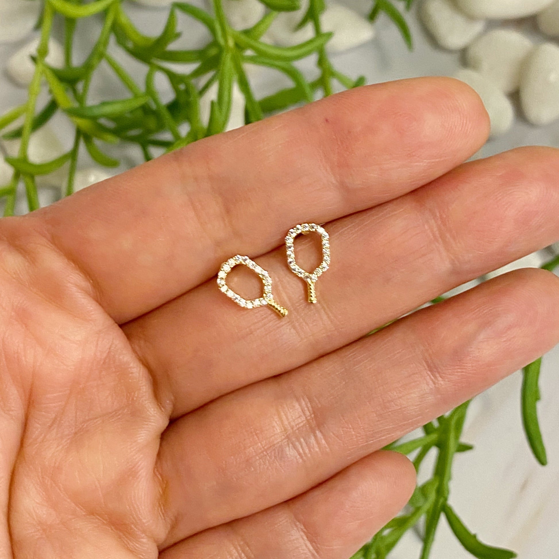 Add a playful sparkle to your look with these Club Pickleball Dainty Earrings — the perfect accessory for any pickleball lover. Designed with a delicate racket outline and encrusted with shimmering stones, these earrings bring just the right mix of sporty charm and elegant style.